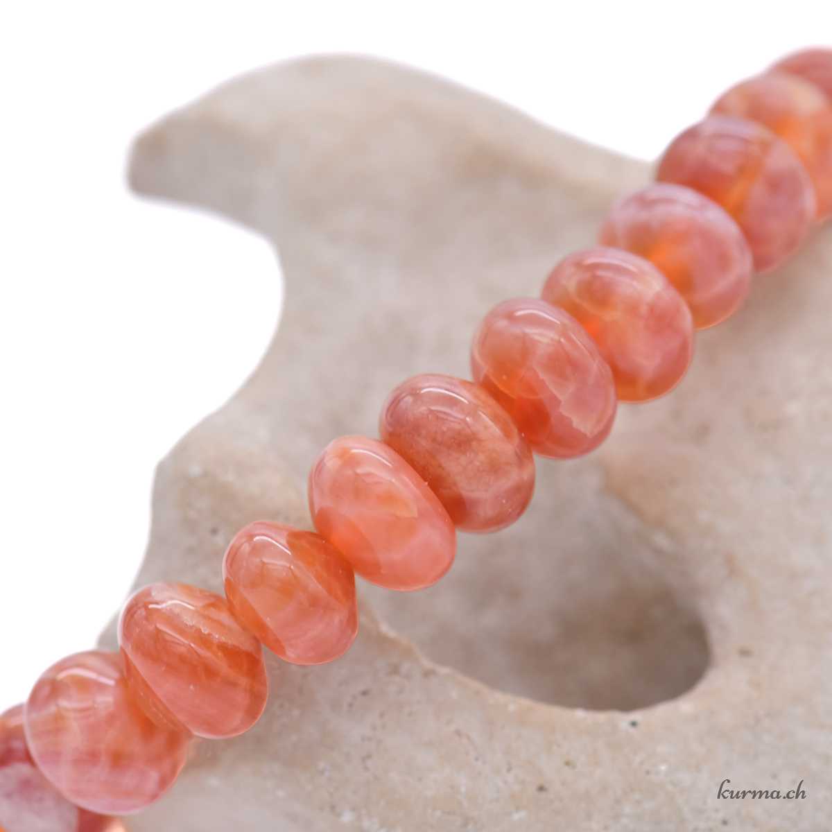• Bracelet Agate de feu (chauffée) en perles de rondelles 8mm montées sur un fil élastique