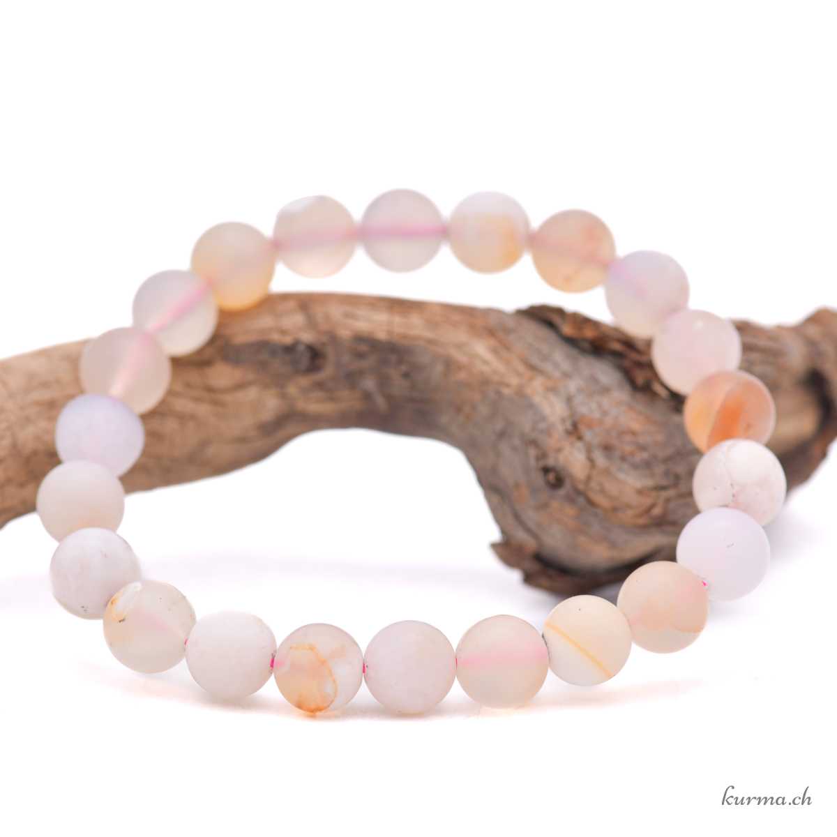Bracelet Agate fleur de cerisier mate 8.5mm - N°18966