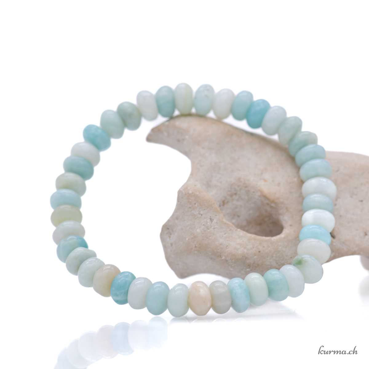 • Bracelet Amazonite rondelles 8mm monté sur un fil élastique.