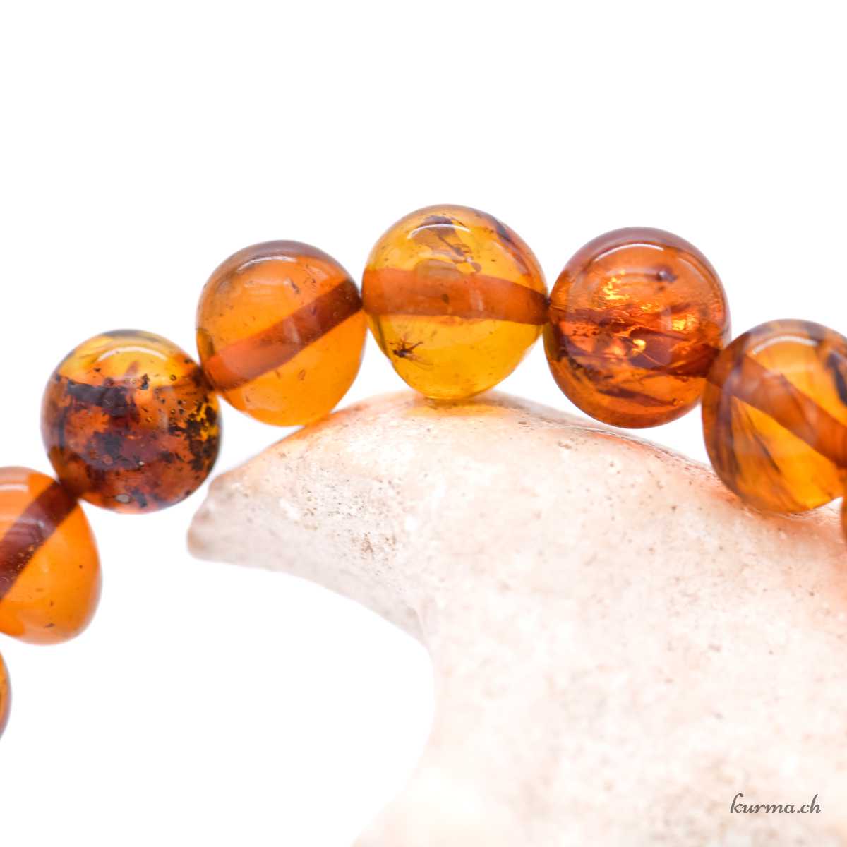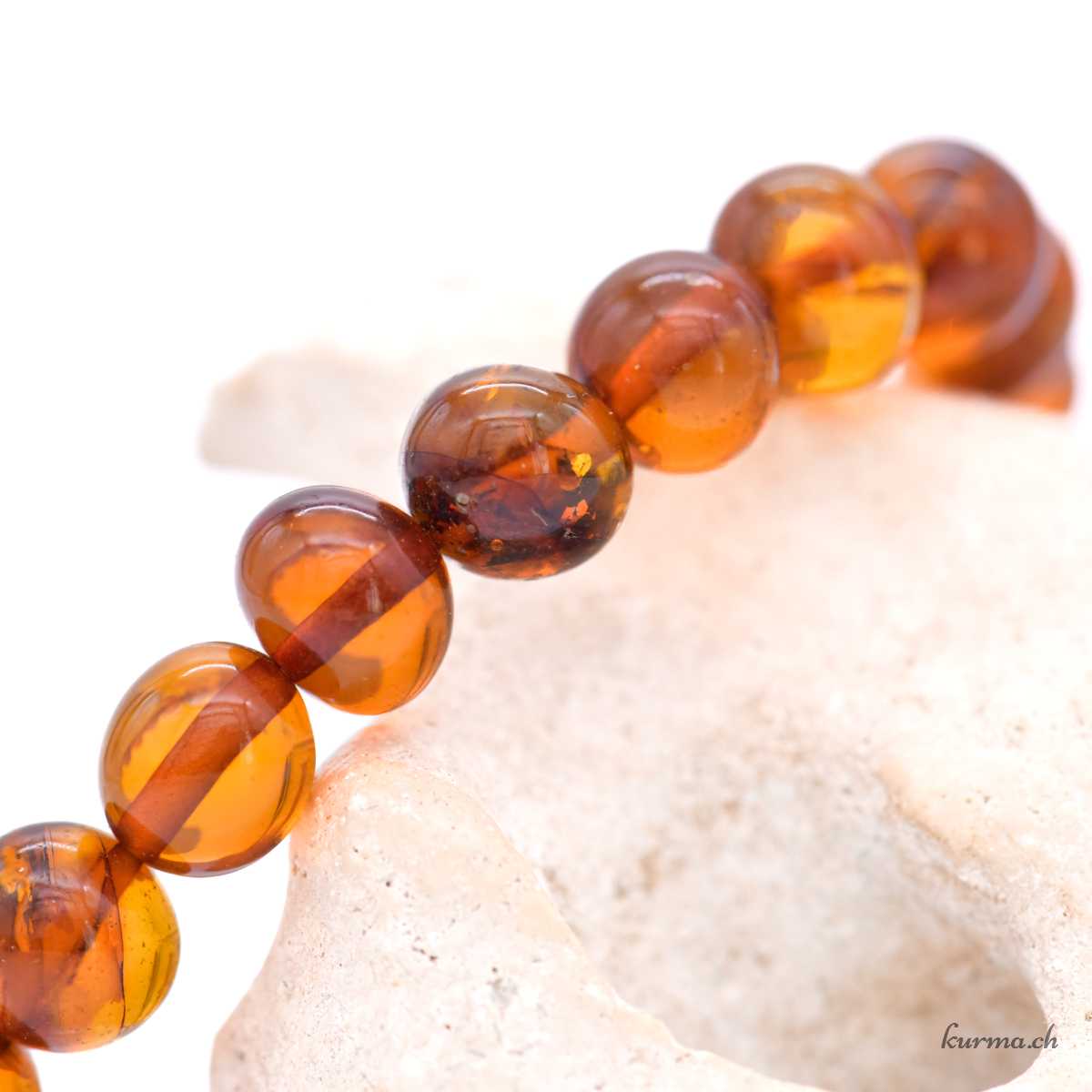 • Bracelet Ambre cognac 8-8.5mm monté sur un fil élastique.