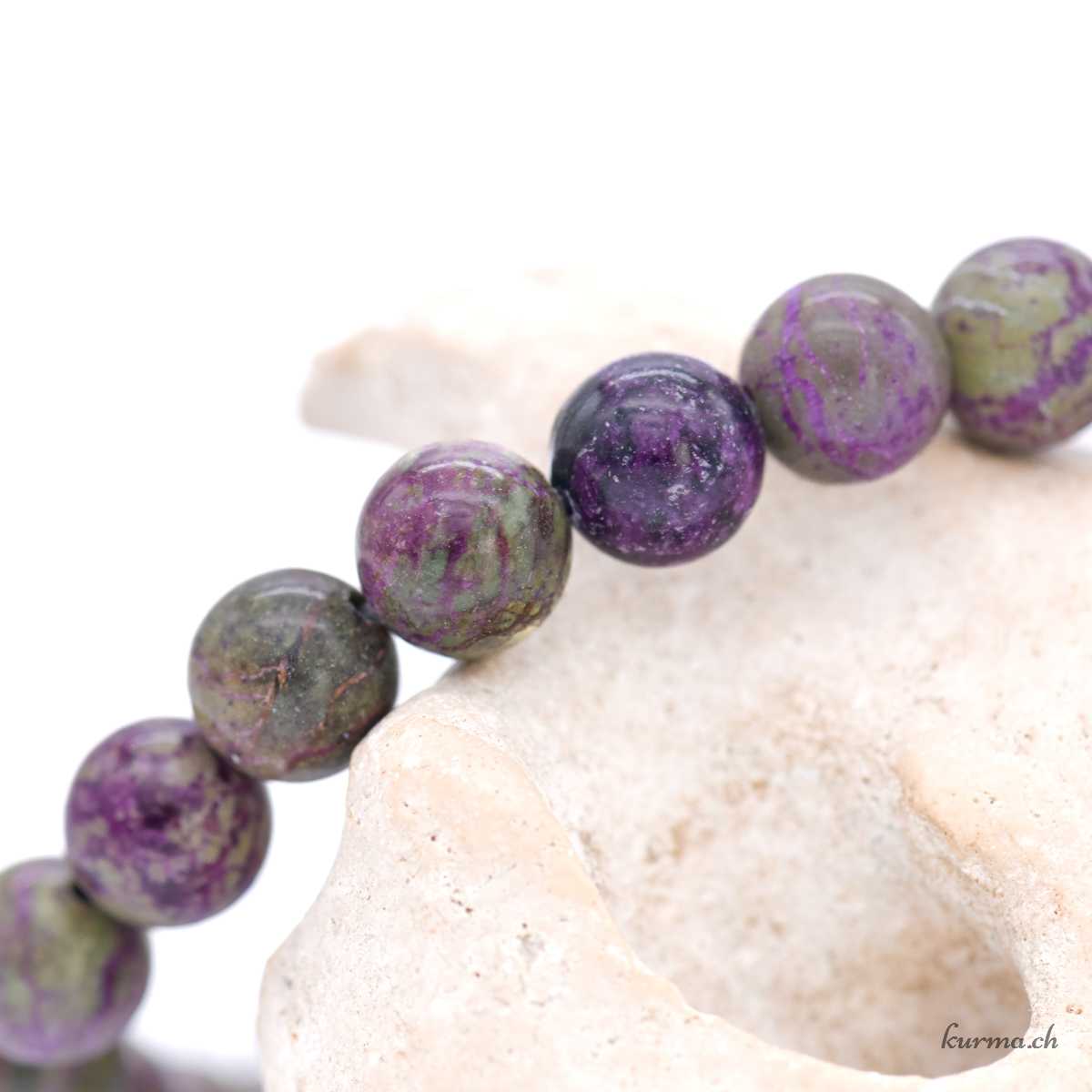 • Bracelet Atlantasite (Stichtite sur Serpentine) 8mm monté sur fil élastique.