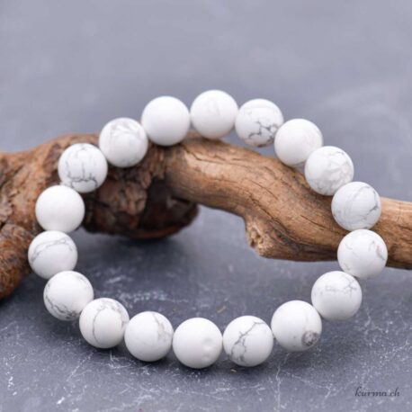 • Bracelet en Magnésite « Howlite » 10-10.5mm avec un fil élastique.