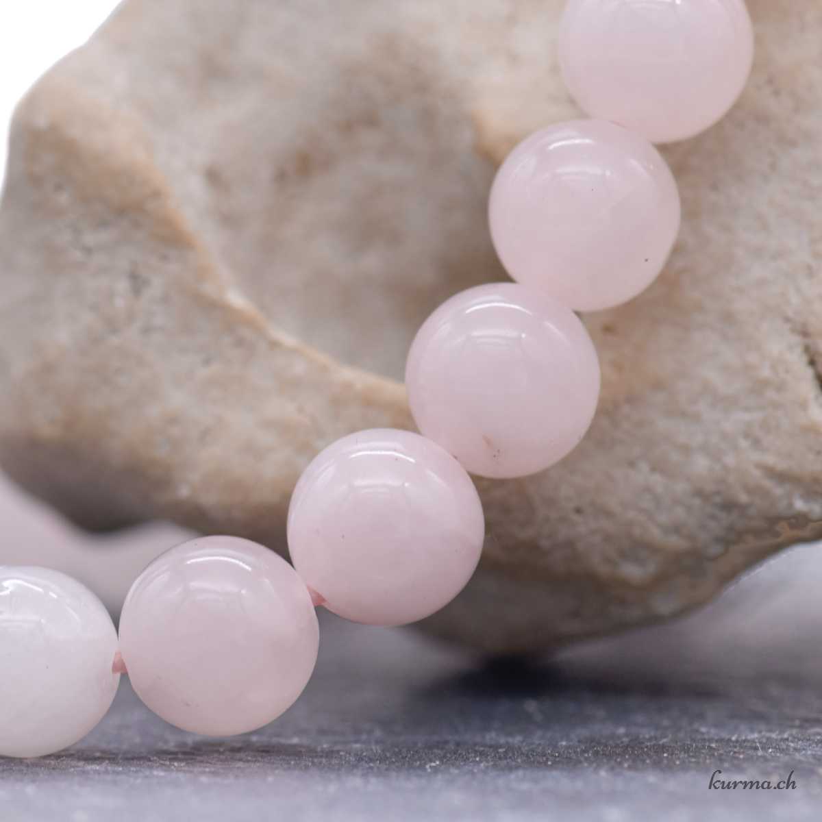 • Bracelet Quartz rose 8mm Mala monté sur un fil élastique.