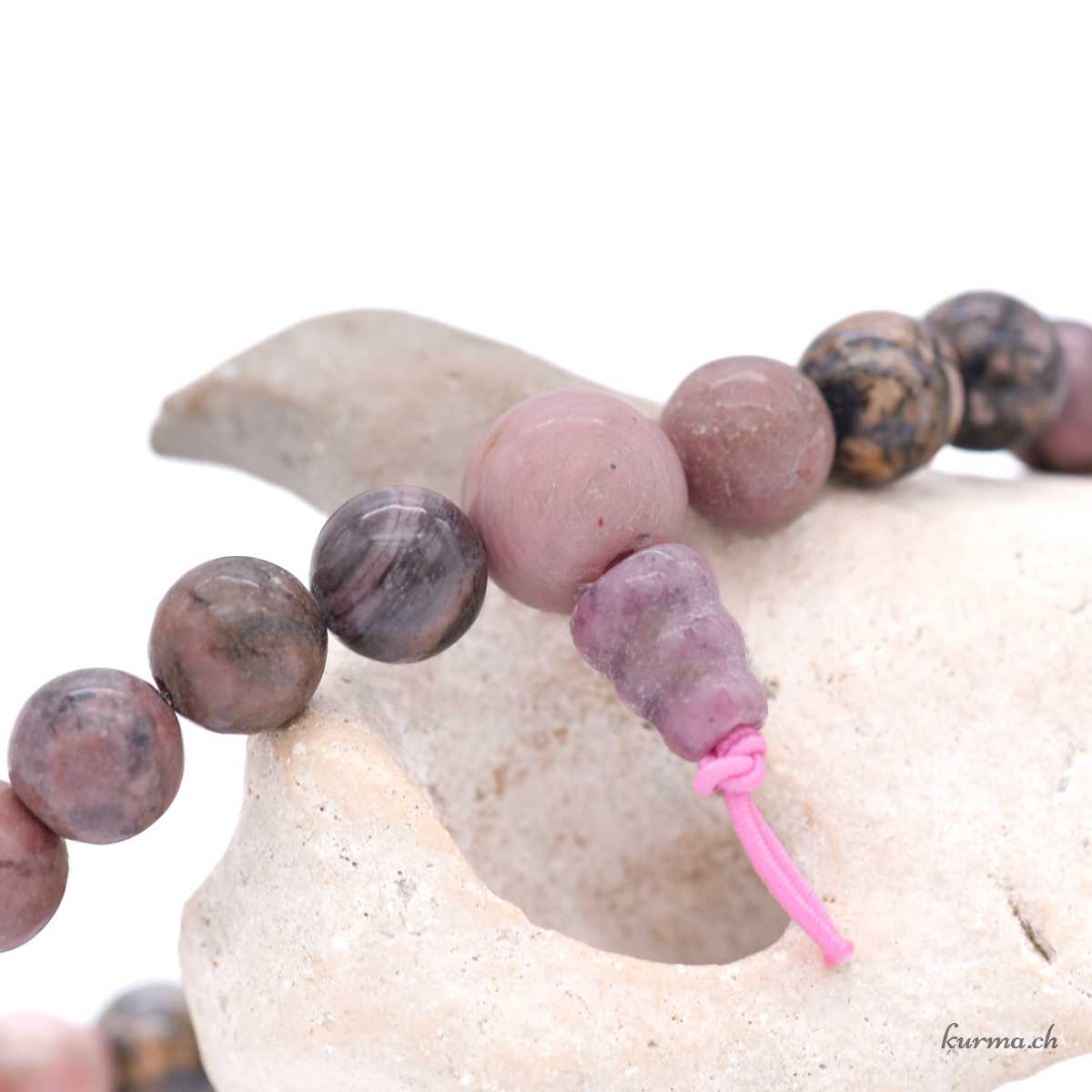 • Bracelet Rhodonite 8mm Mala monté sur fil élastique.