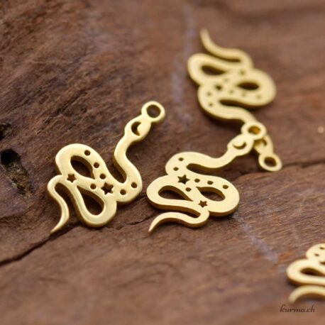 Breloque serpent - 17x8mm - motif étoiles & lune - Argent 925 Doré - N°19400