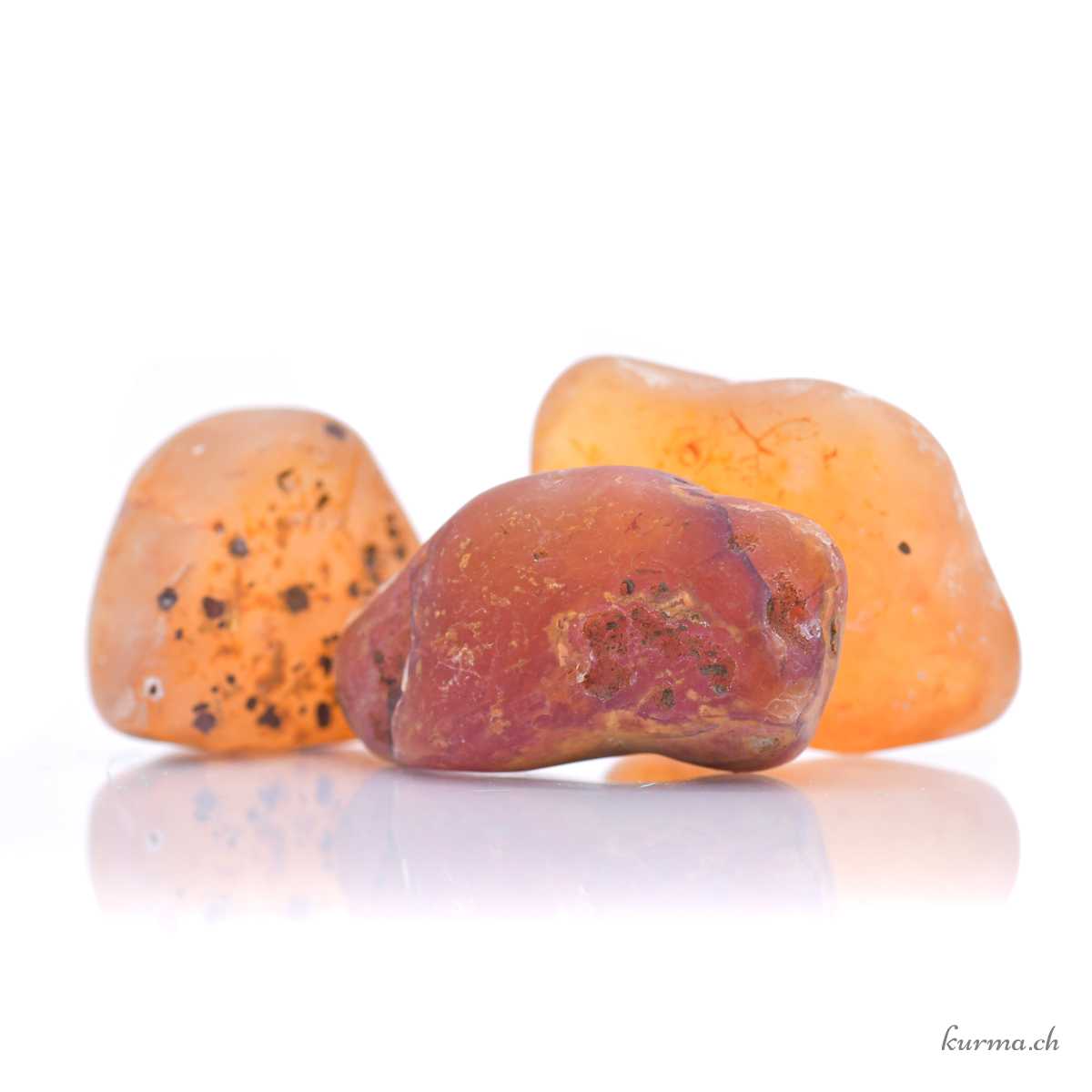 • Cornaline brute arrondie. Une pierre de poche naturelle à emporter avec soi.