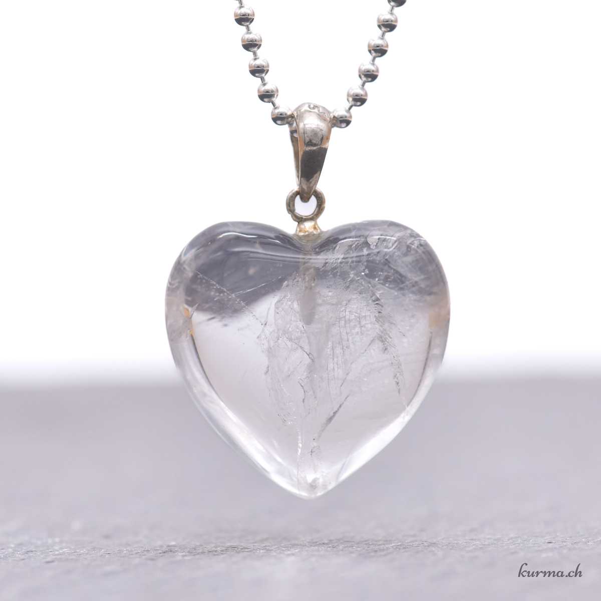 • Pendentif coeur en Cristal de roche avec une bélière en argent 925 et poinçon de maître et marque de responsabilité.