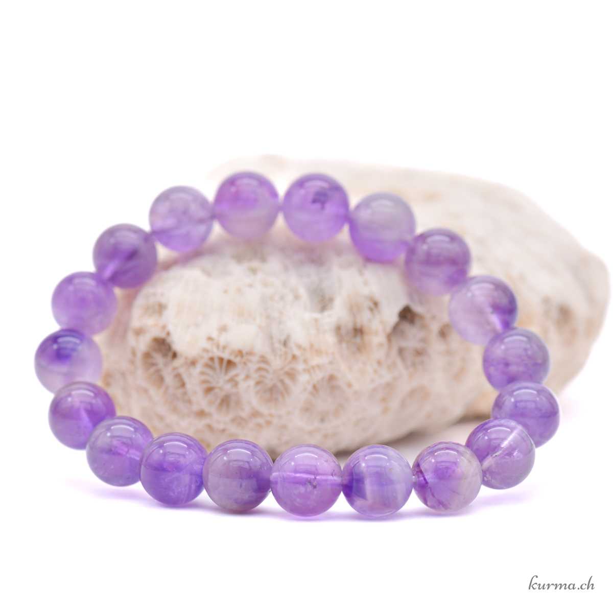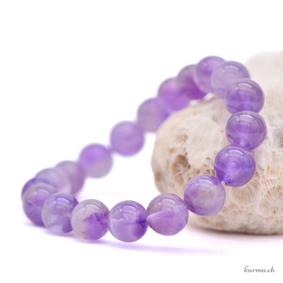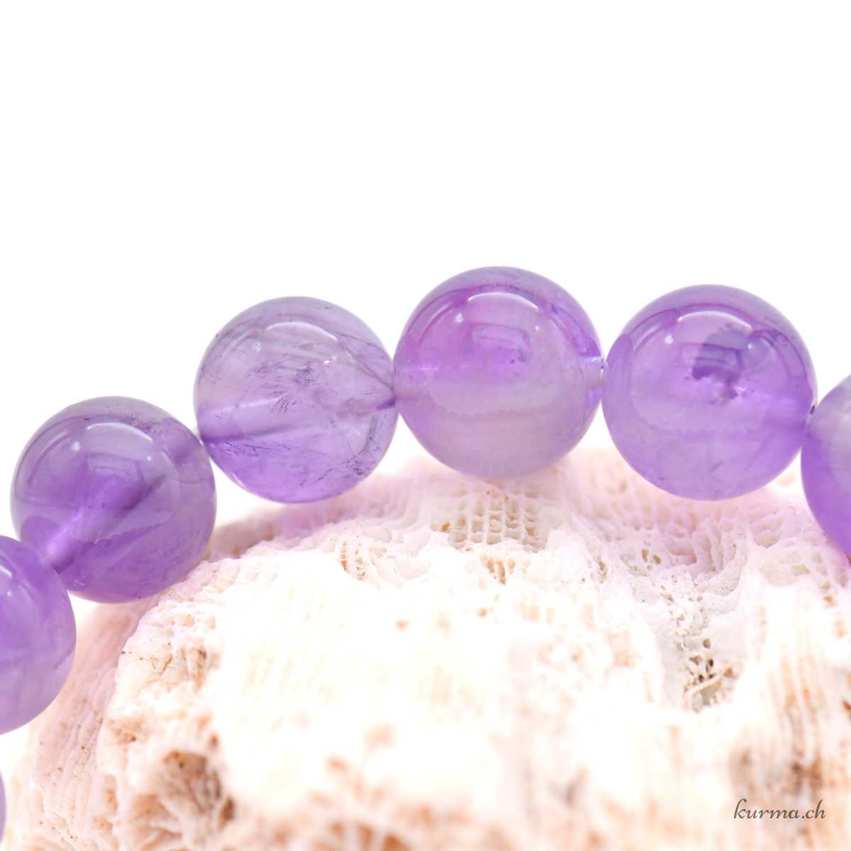 • Dieses Armband aus Amethyst 10-10,5 mm in einem hellen Violettton ist auf einem elastischen Faden aufgezogen.