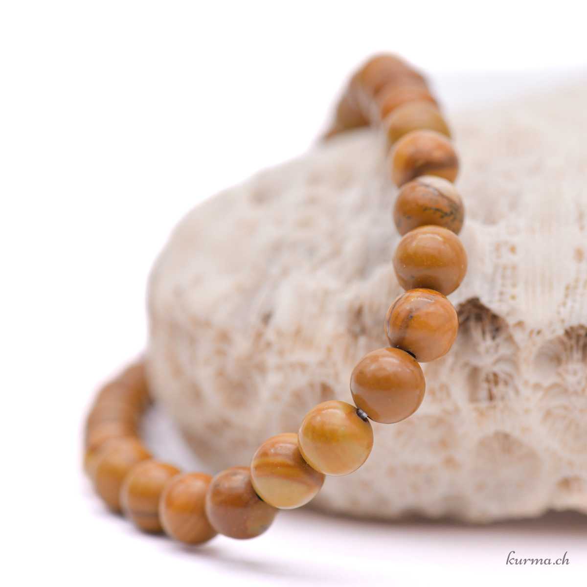 • Armband aus versteinertem Holz, 6,5 mm, auf elastischem Faden