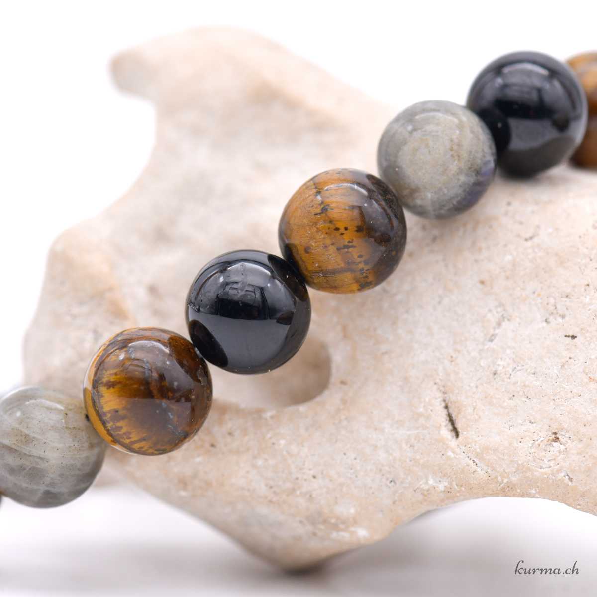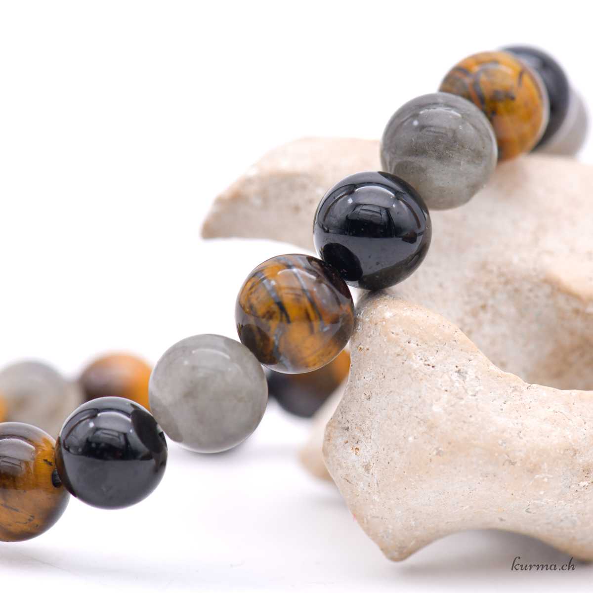 Armband aus Labradorit, Tigerauge und schwarzem Turmalin 10-10,5 mm – Nr. 19116