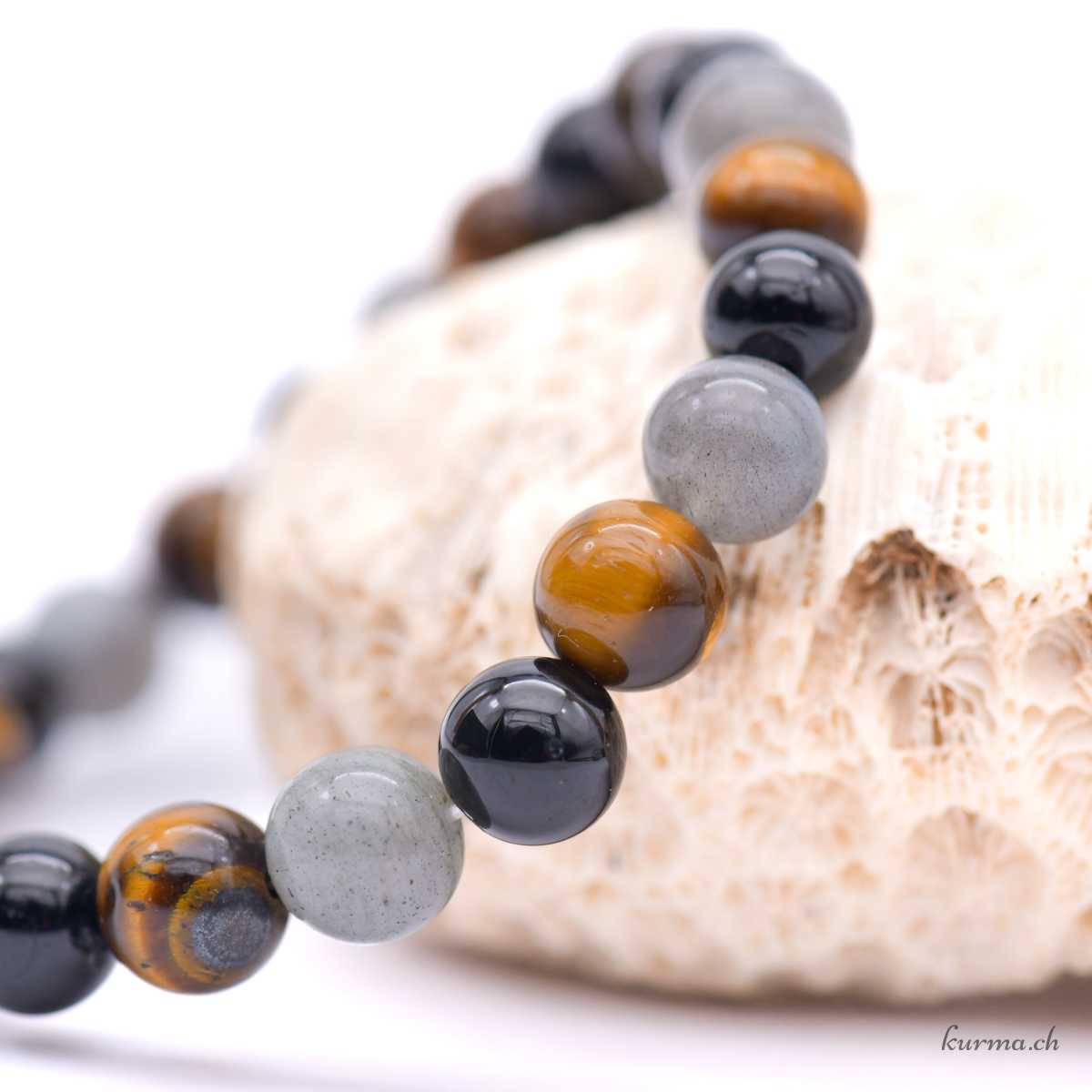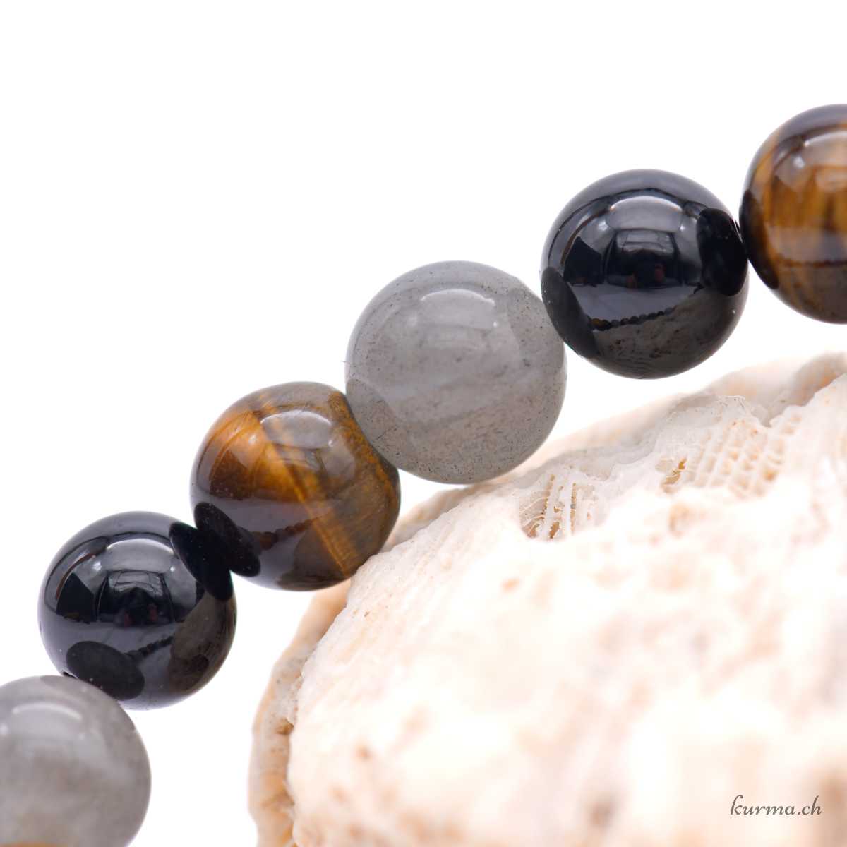 • Armband aus Labradorit, Tigerauge und schwarzem Turmalin 8-8,5 mm mit elastischem Faden.