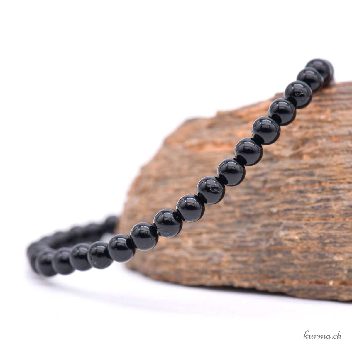 • Armband aus schwarzem Turmalin mit Quarz- oder Glimmer-Einschlüssen, 4,5 mm, mit elastischem Faden