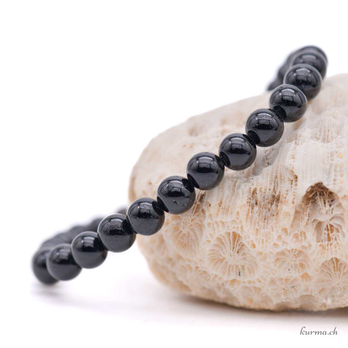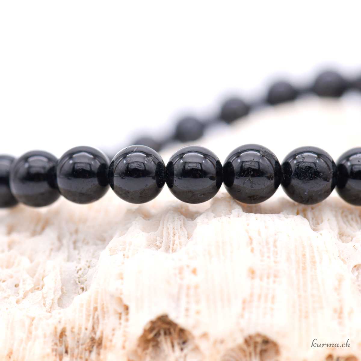 • Armband aus schwarzem Turmalin mit Quarz- oder Glimmer-Einschlüssen, 6-6,5 mm, mit elastischem Faden