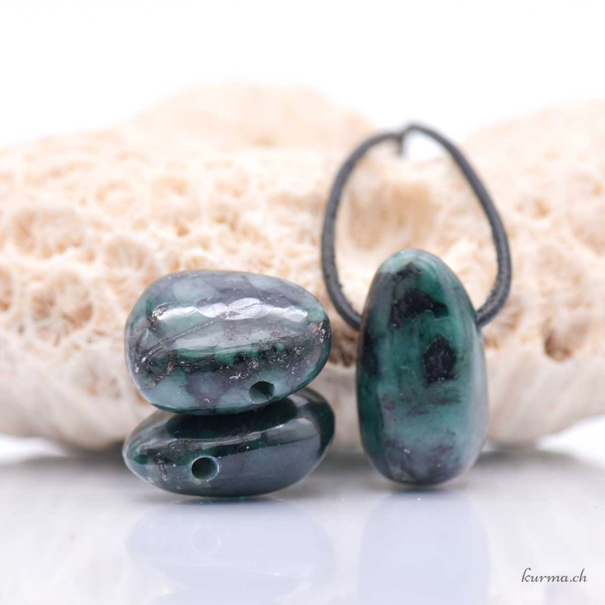 Dunkler Smaragdit - Anhänger aus durchbohrtem Stein - Nr. 19030