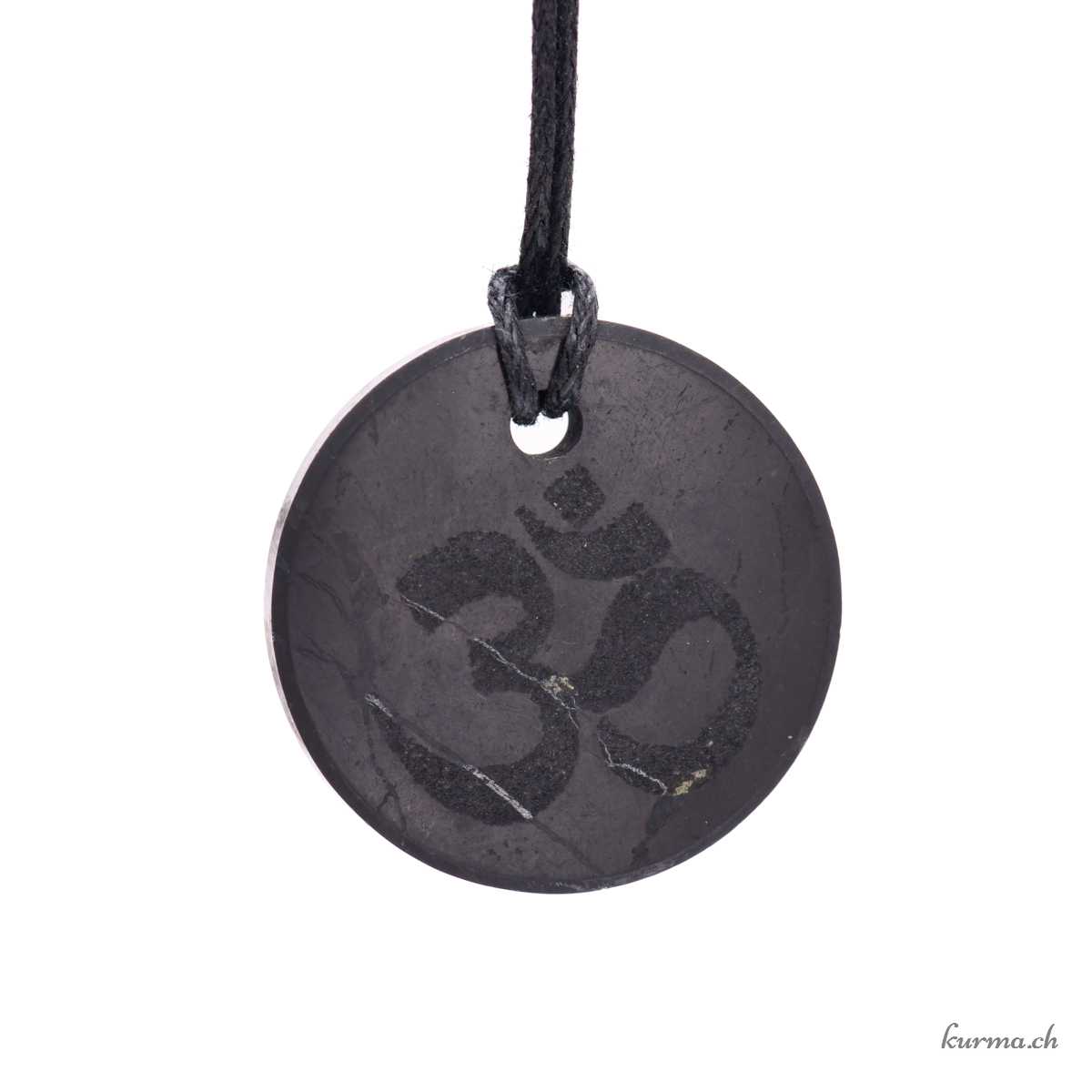Shungite - Stone pendant - Engraved disc 'Om' - No. 19325