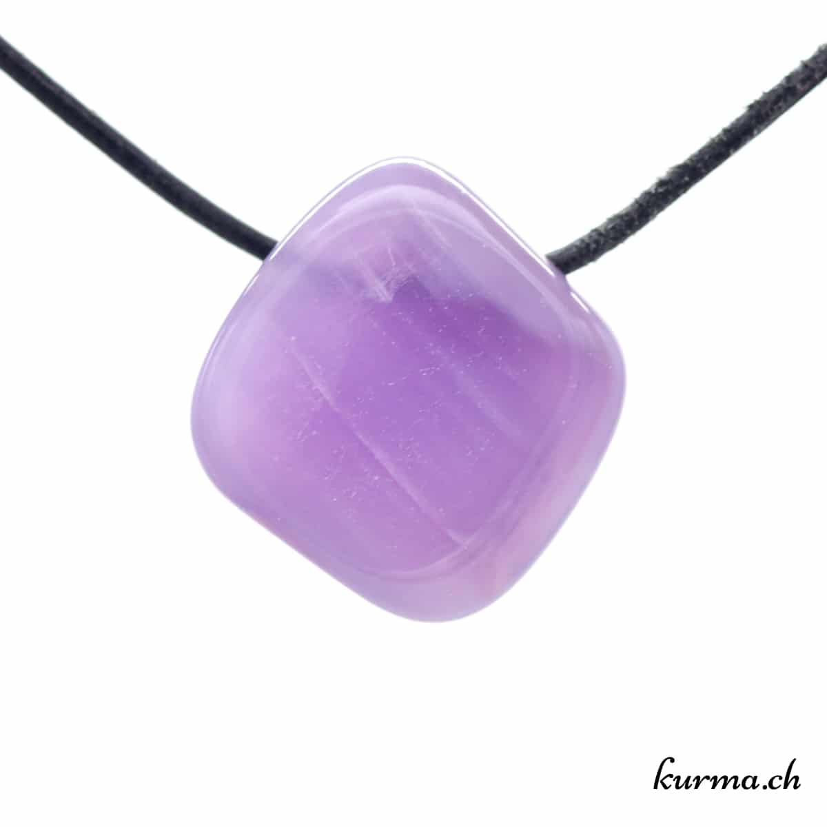 • Bijou en pierre en Fluorite lavande avec une lanière en cuir à choix.