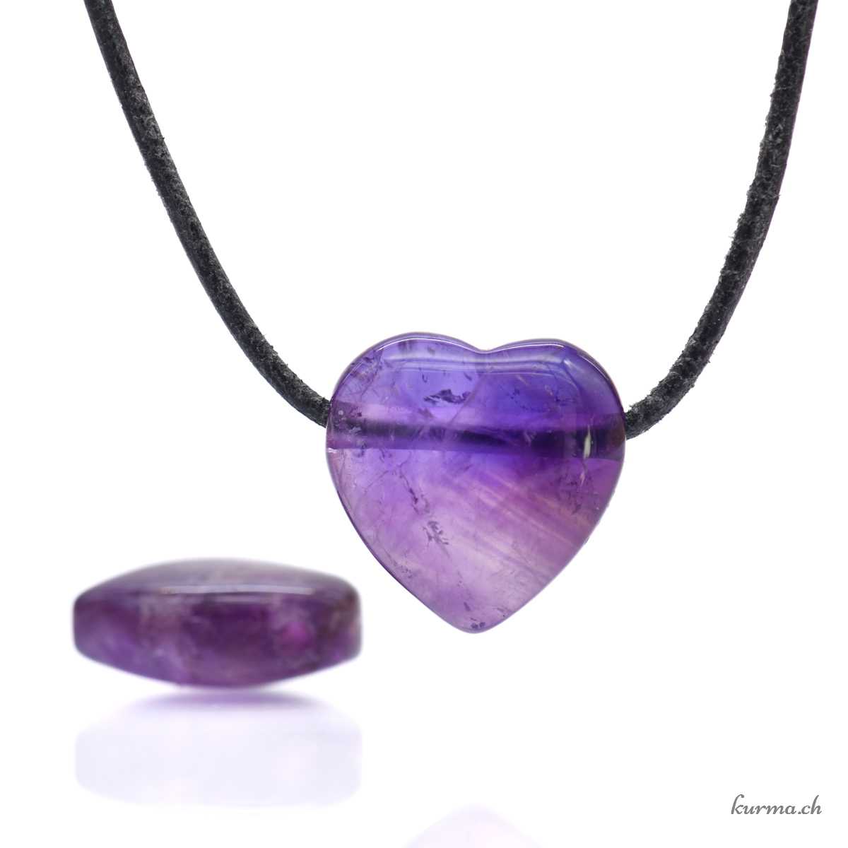 • Ciondolo a forma di cuore in ametista con foro e cordoncino in pelle.