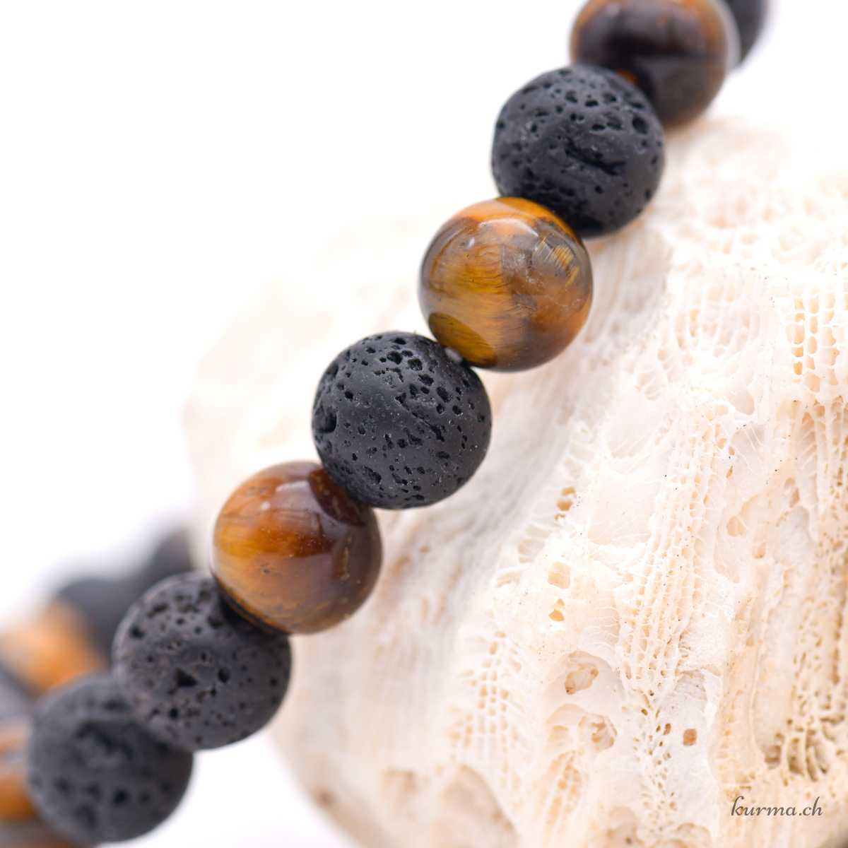 • Bracciale in occhio di tigre e lava 8-8,5 mm con filo elastico