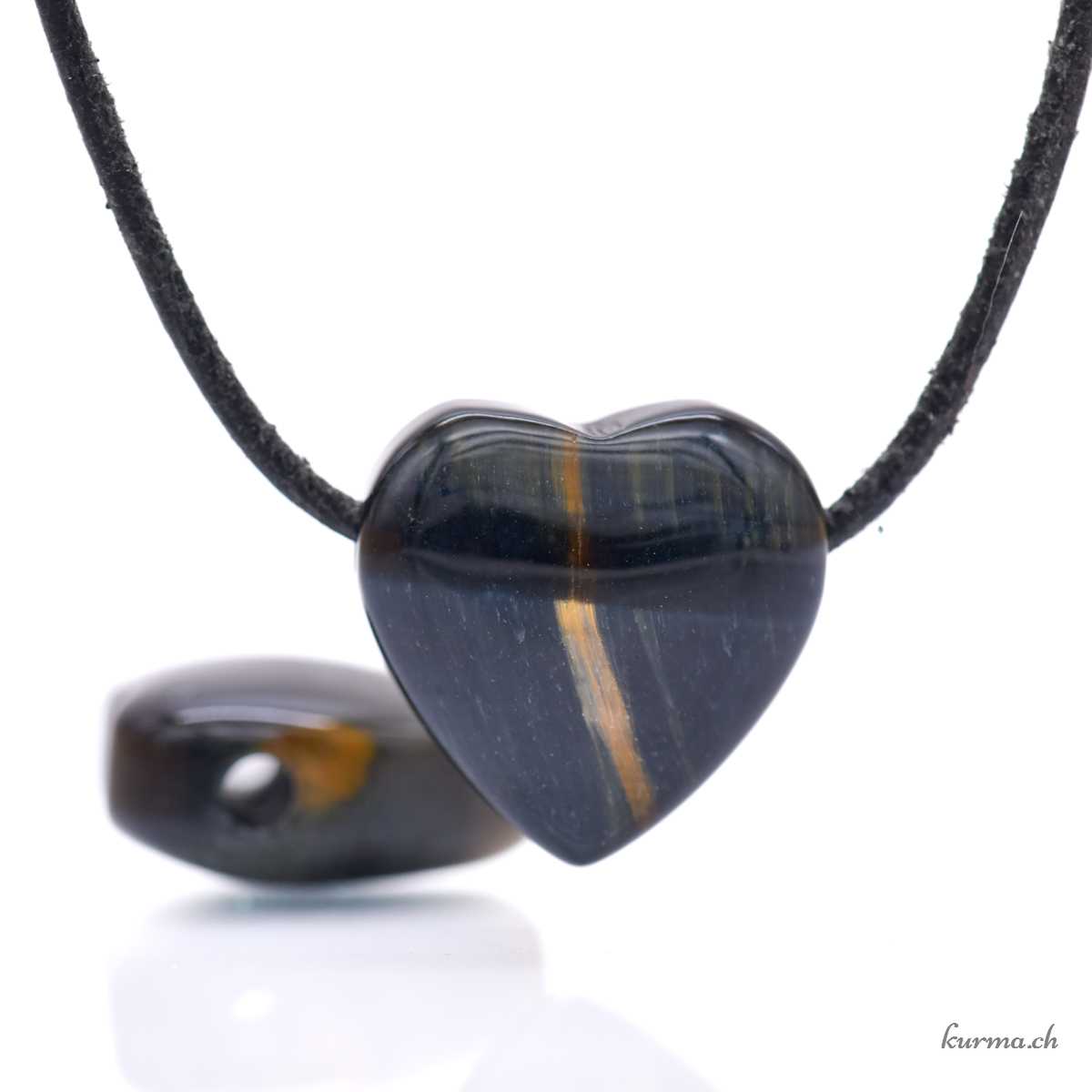 • Ciondolo a forma di cuore in occhio di falco con foro e cordino in pelle.