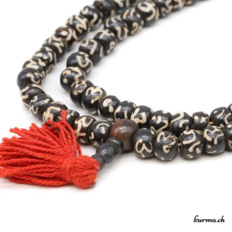 Ce ravissant mala en os d’un diamètre de 8mm avec le symbole  »Om » est le résultat du labeur d’artisans népalais.