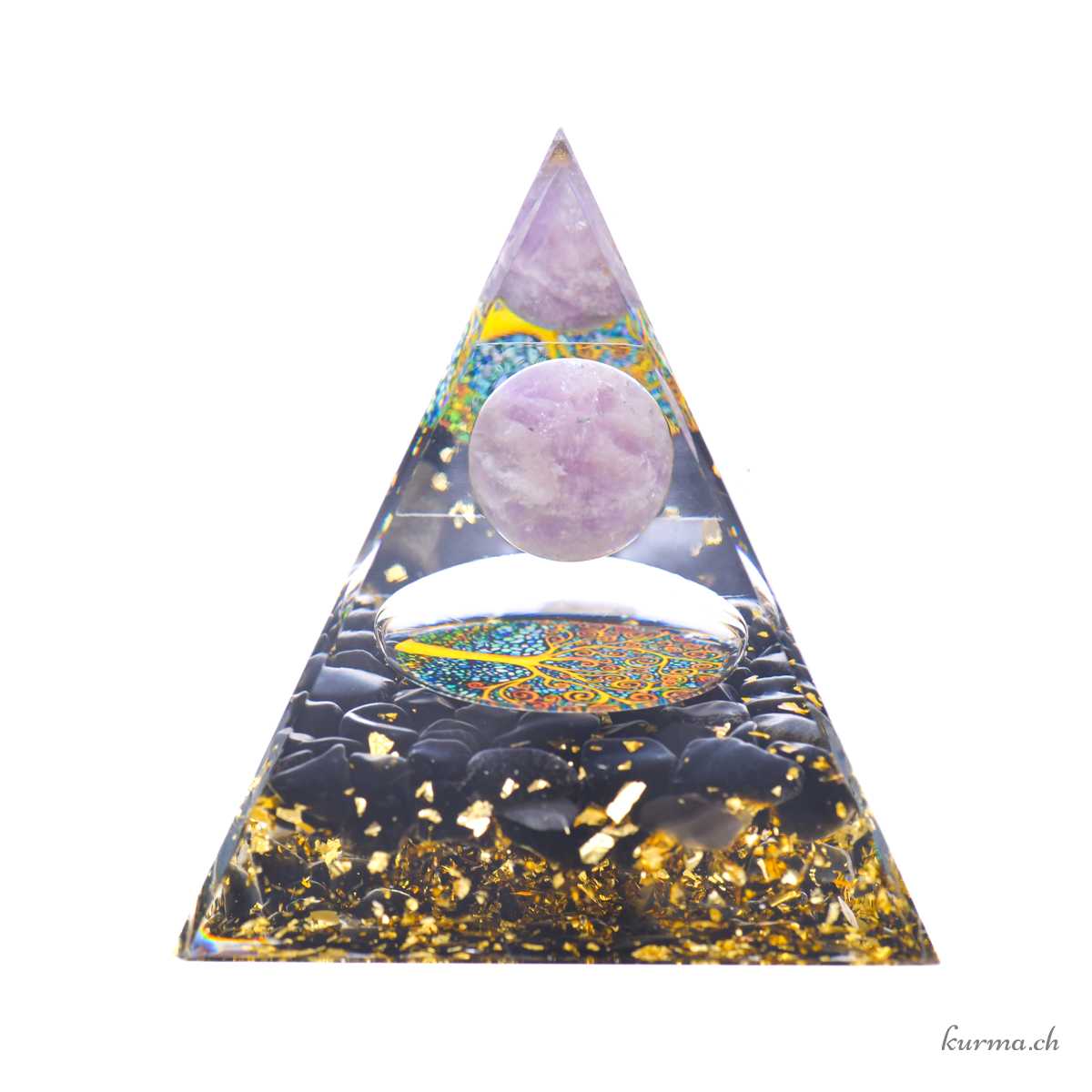 Orgonite - Pyramide 6cm - Améthyste & Obsidienne - Arbre de vie - N°18713
