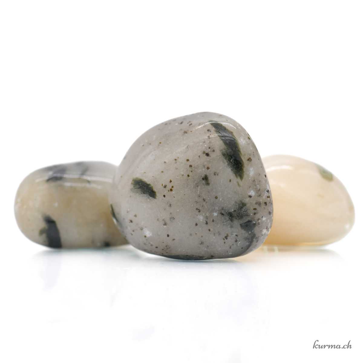 Tourmaline verte sur Quartz - Pierre roulée - Taille L