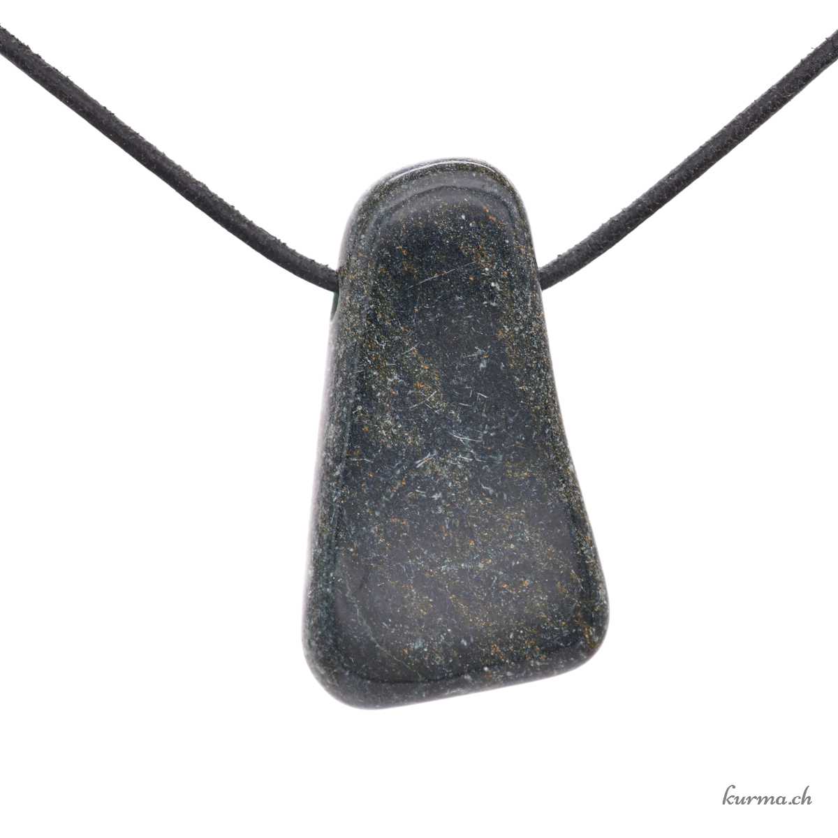 Pendentif en pierre percée en Verdite avec une lanière en cuir de la couleur de ton choix.